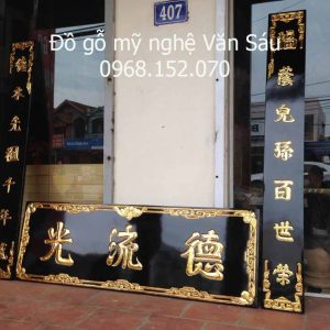 Câu đối và cuốn thư gỗ mít Đức Lưu Quang của Đồ gỗ Văn Sáu được các nghệ nhân làng nghề mộc truyền thống đục hoàn toàn thủ công trên chất liệu lõi mít ta xịn 100%.