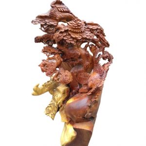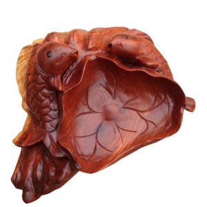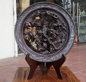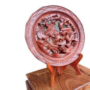 Tranh lý ngư vọng nguyệt cá chép trông trăng bằng gỗ hương (TPT-15)