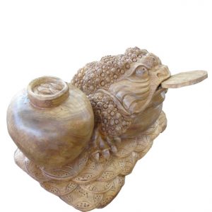– Lưu ý rằng khi trưng tượng gỗ cóc chiêu tài, cần phải để Cóc quay đầu vào nhà với ngụ ý. Cóc đang tha tài lộc về nhà.