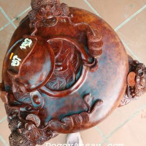 Đặc biệt, cóc phong thủy bằng gỗ hương được đục sâu, đục kỹ. Gia công cực kỳ tỉ mỉ và tinh tế, cho tác phẩm vẻ đẹp tiệm cận tới sự hoàn hảo.