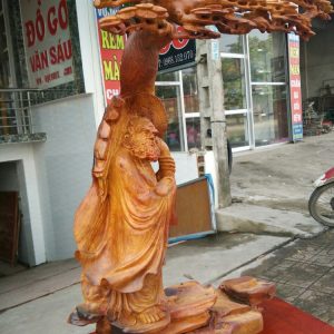 Tượng Đạt Ma đứng dưới gốc tùng được các nghệ nhân của Đồ Gỗ Văn Sáu chúng tôi khéo léo tạo hình dựa trên triết lý tôn trọng tối đa vẻ đẹp tự nhiên từ khối gỗ vì thế mà toàn bộ tác phẩm trở nên gần gũi, sống động và vô cùng chân thật.