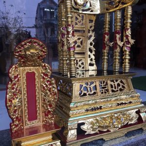 Cần lưu ý rằng, bàn thờ của người Việt – nhất là người Việt sống ở khu vực nông thôn. Họ luôn được trưng tại vị trí trung tâm, trang trọng lịch sự nhất trong nhà. Tùy vào gia cảnh, bàn thờ có thể to – nhỏ, sang trọng hoặc giản dị… Tuy nhiên, không thể thiếu trong không gian tâm linh ấy là bàn thờ hoặc sập thờ, hoành phi – câu đổi, án gian – cửa võng ỷ thờ hay ngai thờ. Trong phạm vi bài viết – Đồ gỗ mỹ nghệ Văn Sáu chỉ giới thiệu qua về Ngai (ỷ) thờ.
