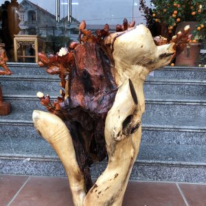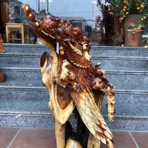 Tượng được đục hoàn toàn thủ công, đục sâu, đục kỹ thông qua bàn tay tinh xảo của các nghệ nhân. Tất cả các chi tiết từ từng nhành lá đến cành hoa…đều được gia công kỹ càng, chăm sóc tỉ mỉ.