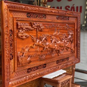 Chất liệu để làm lên bức tranh là gỗ Hương đỏ :