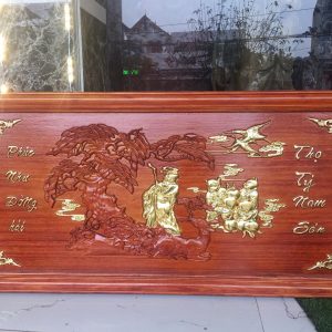 Tranh mừng thọ gỗ hương là sản phẩm đục trên gỗ hương với chiều dài 127cm, rộng 60cm. Đẹp mĩ miều, lịch lãm. Xứng đáng là món quà không thể hợp lý hơn để tỏ lòng hiếu thảo với ông bà cha mẹ. Tranh gỗ chúc thọ ông bà hiện đang được bán với giá 6 triệu đồng/1 bức.