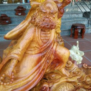 Tượng Đạt Ma múa quyền cưỡi rồng ôm đá tự nhiên bằng gỗ hương được các nghệ nhân của Đồ Gỗ Văn Sáu chúng tôi làm trên chất liệu gỗ hương cực quý. Đây là một kiệt tác tượng gỗ mỹ nghệ hấp dẫn nhất. Tượng được khắc họa lên bởi hình ảnh Đạt Ma với một dáng vẻ rất oai phong, lẫm liệt đang múa quyền cưỡi rồng xuống nhân gian, cứu giúp nhân gian, một lòng hướng thiện từ bi bác ái. Với kích thước cao 87cm rộng 1m05cm, sâu 60cm. Đồ Gỗ Văn Sáu xin trân trọng giới thiệu.
