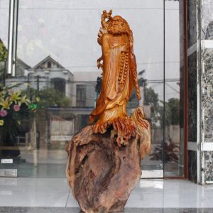 Tượng với kích thước cao 87 cm, rộng 40 cm, sâu 27 cm. Với giá bán là 5 triệu đồng. Tượng Đạt Ma Sư Tổ gỗ hương được khắc họa lên chi tiết với hình ảnh vị Sư Tổ Đạt Ma chân đi dép. Tay cầm thiền trượng một tay cầm hạt vòng. Ngài đi khất thực, ngài có đứng trên tảng đá. Tác phẩm được làm trên chất liệu gỗ hương đẹp, bền, đẹp theo thời gian với mùi thơm vô cùng dễ chịu.