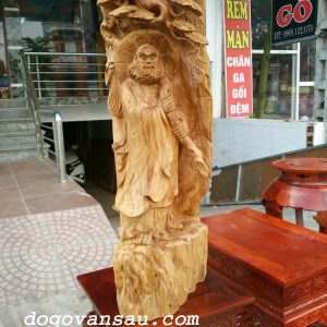 Tượng được chế tác từ chất liệu gỗ ngọc nghiến. Loại gỗ quý nhất dùng để chế tạo các đồ gỗ mỹ nghệ và đồ gỗ phong thủy. Các đường đục chi tiết, tỉ mỉ, tinh tế, vân hoa kín mít, nu hoa chân hổ chân báo kì dị độc đáo, đẹp hoàn hảo. Tượng bề thế cao to, vững chắc tượng trưng cho sức mạnh oai phong và ý chí quyết chiến quyết thắng của gia chủ.