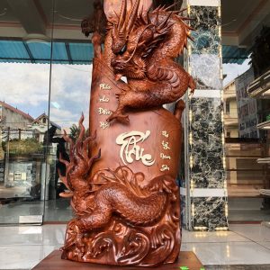 Tượng rồng gỗ hương với kích thước: Cao 115 cm, rộng 50 cm, sâu 25cm. Giá chỉ 8 triệu đồng là quý vị có thể sở hữu cho mình được mẫu tượng nhất long vô cùng đẹp chỉ có tại Đồ Gỗ Văn Sáu.