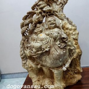 Tác phẩm tạc hình tượng cụ Di Lạc ngồi trên bị tiền,với dáng ngồi ung dung khoan thai dưới gốc cây tùng ,khuôn mặt hoan hỉ vui cười.Tượng được các nghệ nhân của Đồ Gỗ Văn Sáu đục tay hoàn toàn tỉ mỉ đến từng chi tiết để có thể tạo ra được một kiệt tác trên cả sự tinh tế.đạt đến sự hoàn mỹ